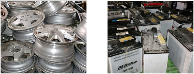 銅線・銅管・鉄・アルミ缶・砲金・真鍮・アルミサッシ・バッテリー・ラジエーター・車のホイールなどがあります。 一般の工場などでは、ステンレスくず・鉛・金属くずなども対象となります。